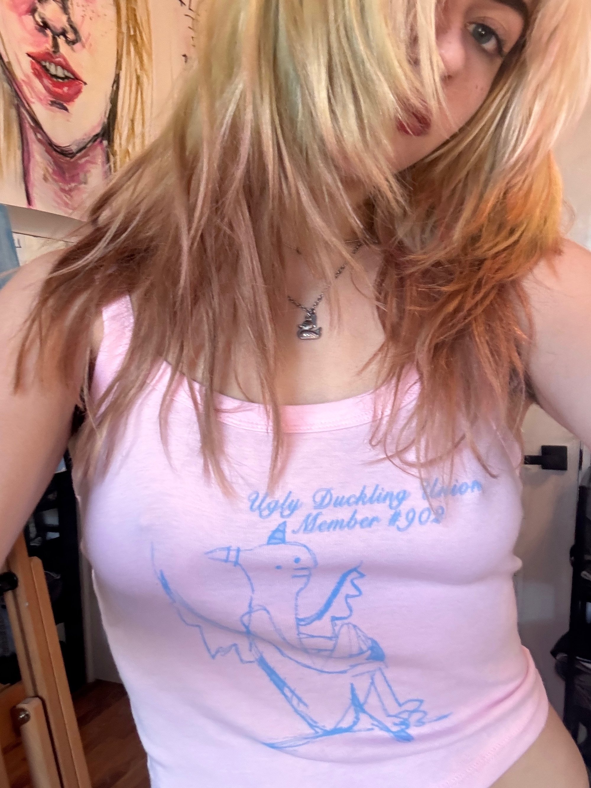 Pink Ugly Duckling Union Tank Top w/ Light Blue Ink